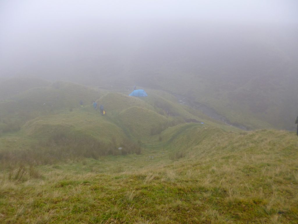 Approaching dig in morning mist
