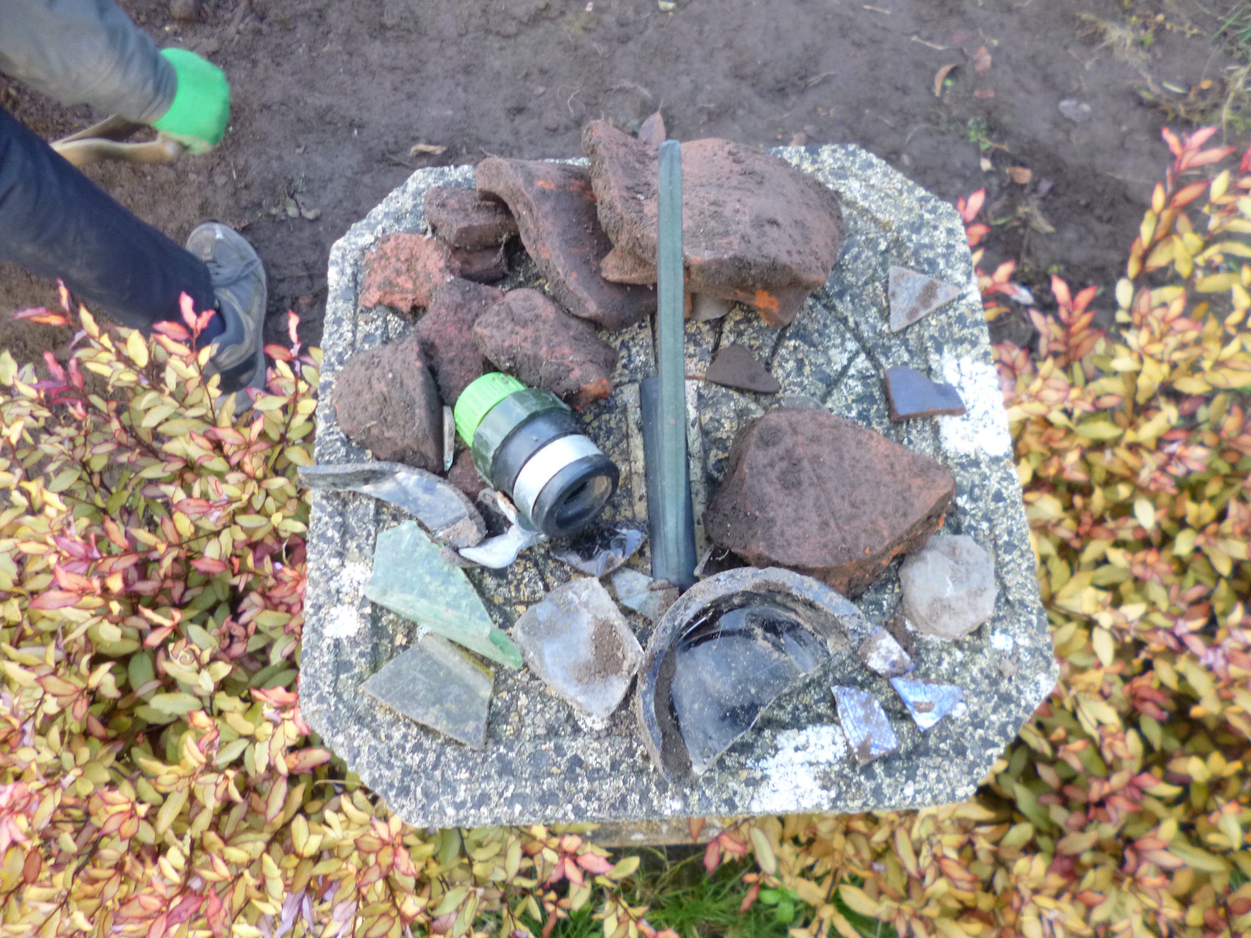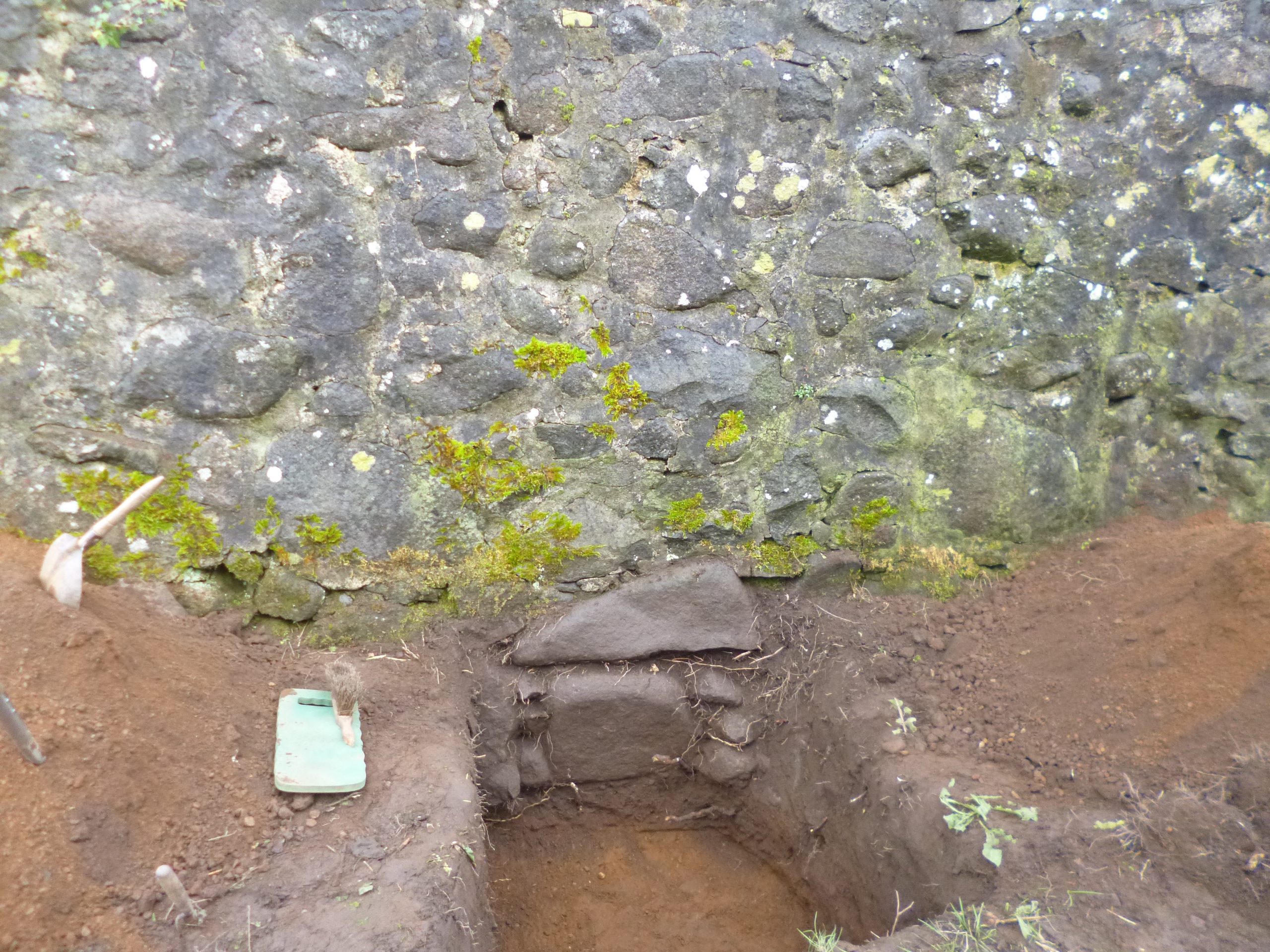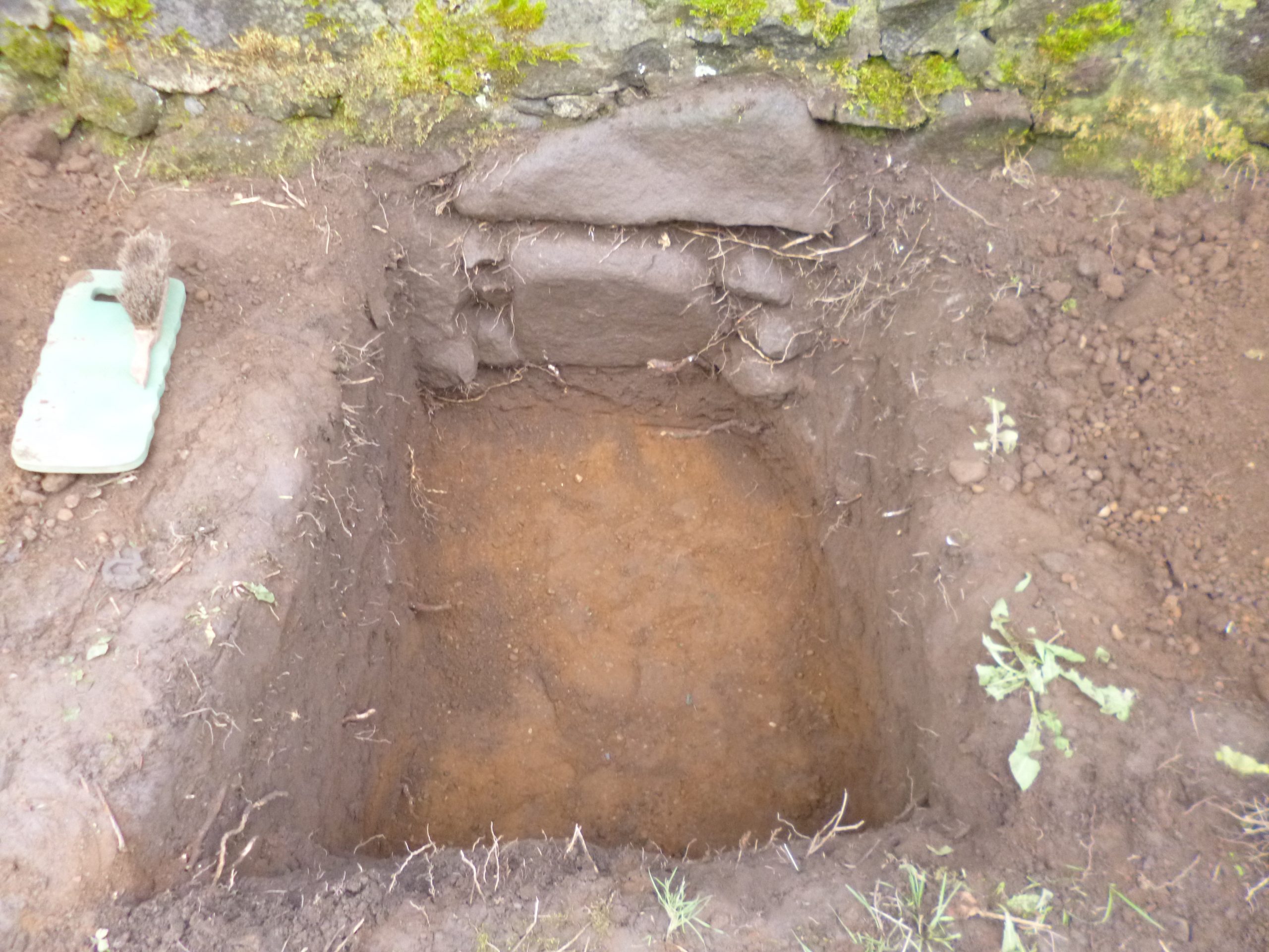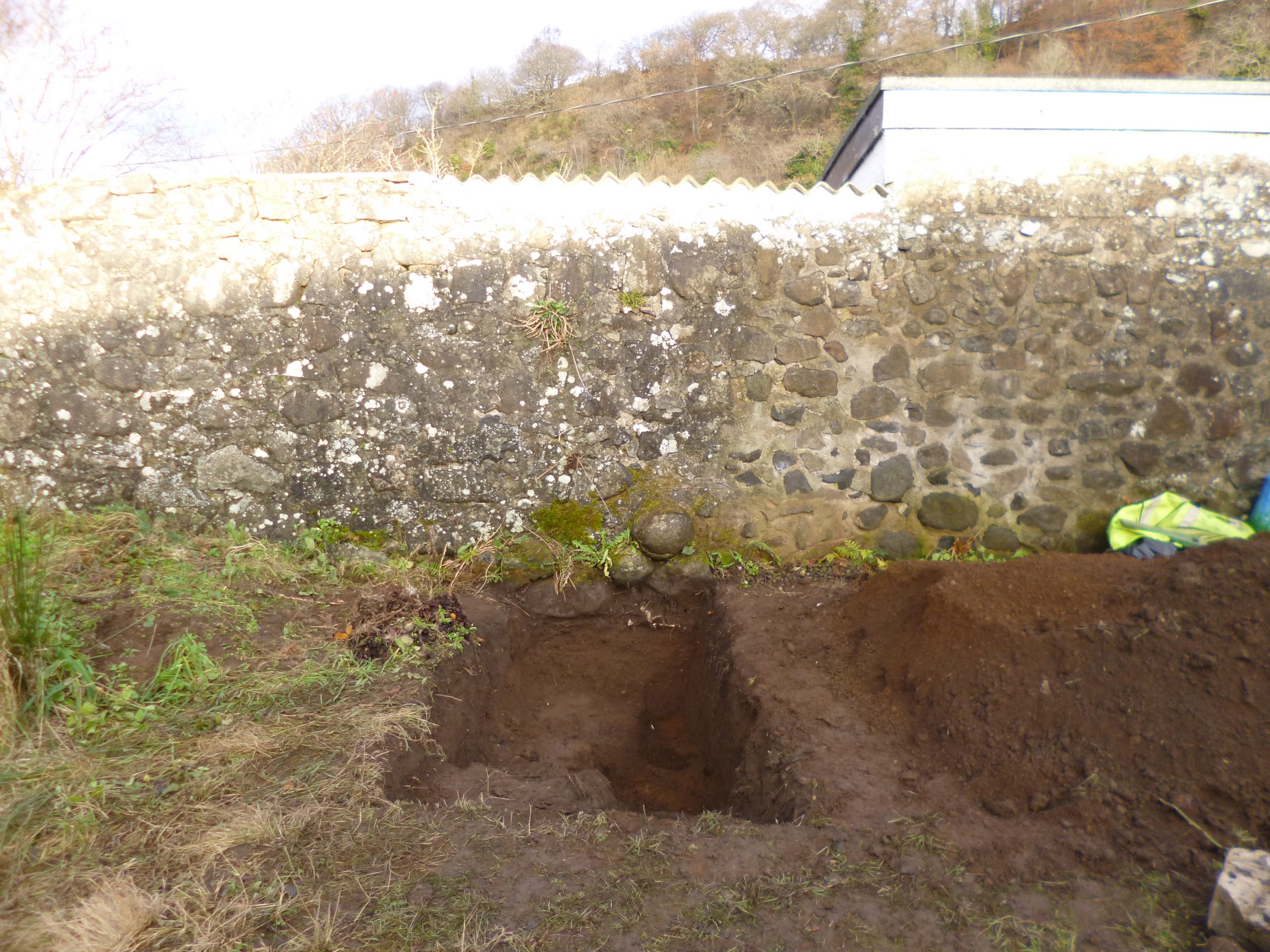 2 test pits against the wall in garden in St Thomas’s Well, Stirling.